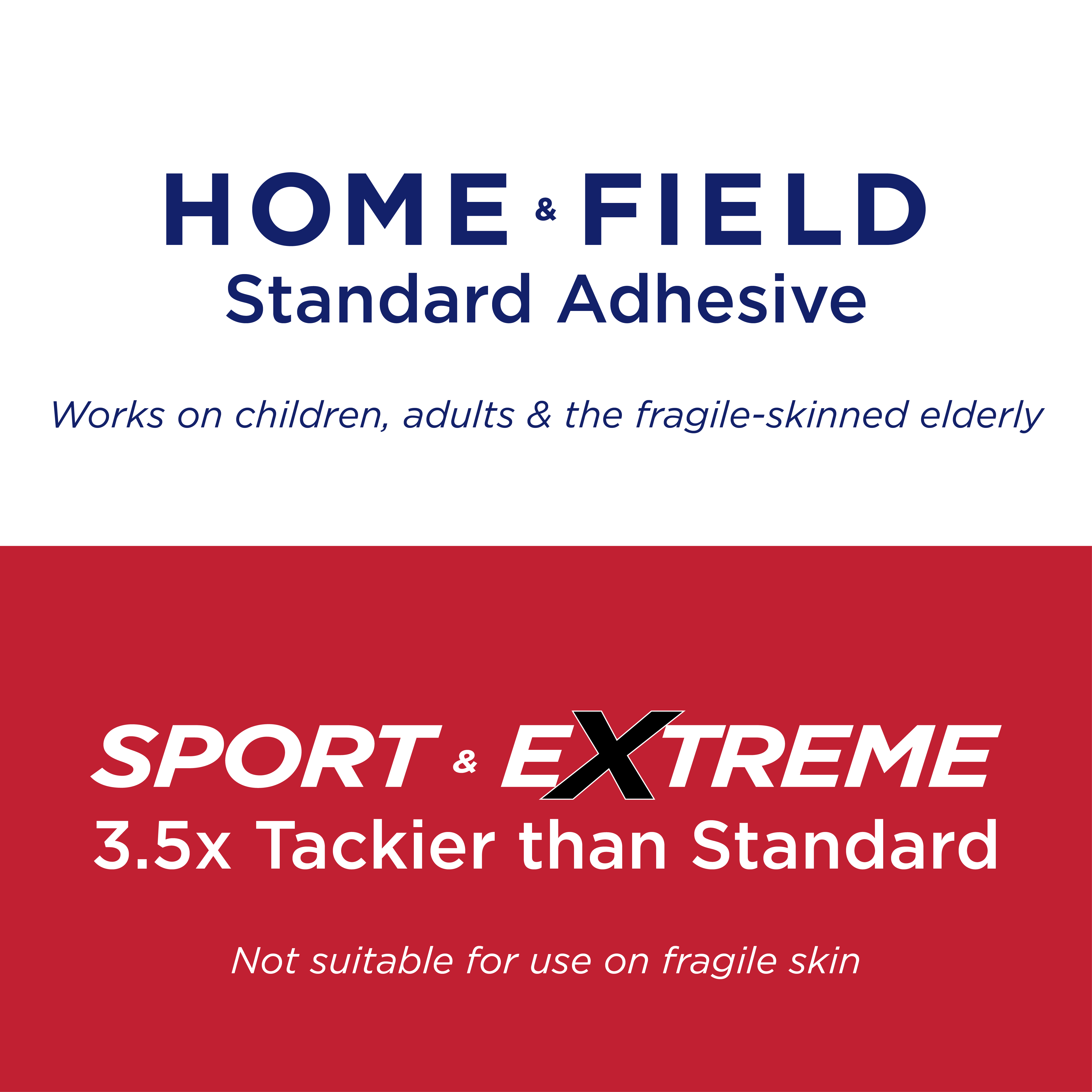 3.5x Tackier Adhesive Engineered with an aggressive adhesive 3.5x tackier than our standard tape, it is designed to lock on and stay securely in place for up to 7-10 days through sweat, dirt, and joint movement. (Note: Not for use on fragile skin).