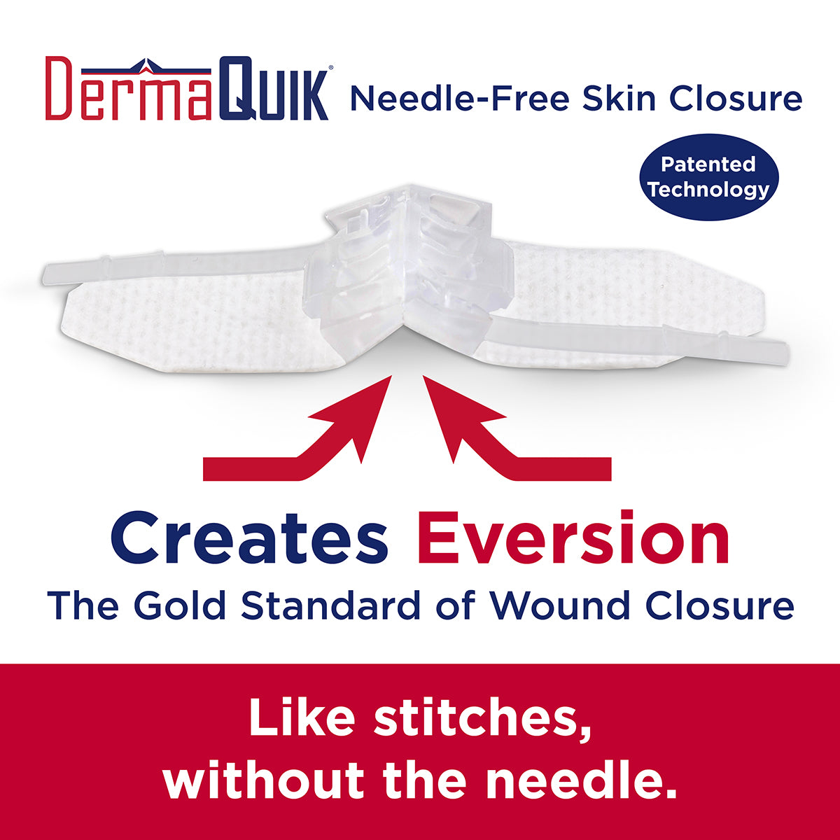 Award-Winning Eversion Technology Winner of the R&D 100 Award, our patented device creates Eversion—lifting the wound edges outward so the deepest layers of skin can heal together. It is the clinical standard of closure, now available in the field.